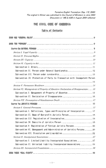This is a tentative English translation prepared by the JICA Project Office in the Ministry of Justice of Cambodia for reference purpose only. This translation was made from Japanese version, and is subject to further review to reflect the Khmer original draft more precisely. The official draft submitted by the Ministry of Justice to the Council of Ministers is in Khmer.