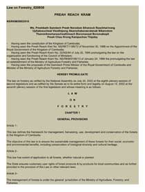 This law defines the framework for management, harvesting, use, development and conservation of the forests in the Kingdom of Cambodia. The objective of this law is to ensure the sustainable management of these forests for their social, economic and environmental benefits, including conservation of biological diversity and cultural heritage.
