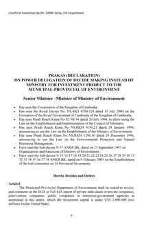 The Municipal-Provincial Department of Environment shall be tasked to review, and comment on the IEIA or Full EIA report of private individuals or private companies, joint-venture companies, public companies or ministries/government agencies. This document is the unofficial translation.